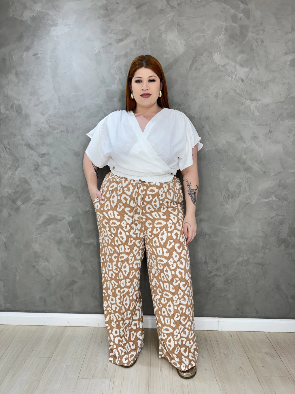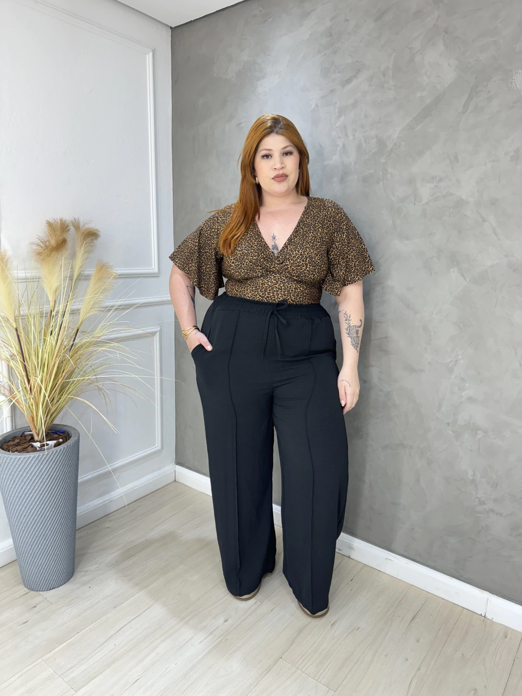 A nossa calça feminina estampada plus size é a escolha perfeita para quem busca estilo, conforto e versatilidade no dia a dia. Com uma estampa exclusiva e moderna, ela proporciona um look fashion e super atual, ideal para qualquer ocasião, do casual ao mais arrumado. Feita com tecido leve e confortável, ela se ajusta perfeitamente às curvas, garantindo liberdade de movimento e um caimento impecável. A cintura alta modela o corpo, enquanto o corte e a elasticidade garantem o conforto necessário para um dia longo, sem perder a elegância.